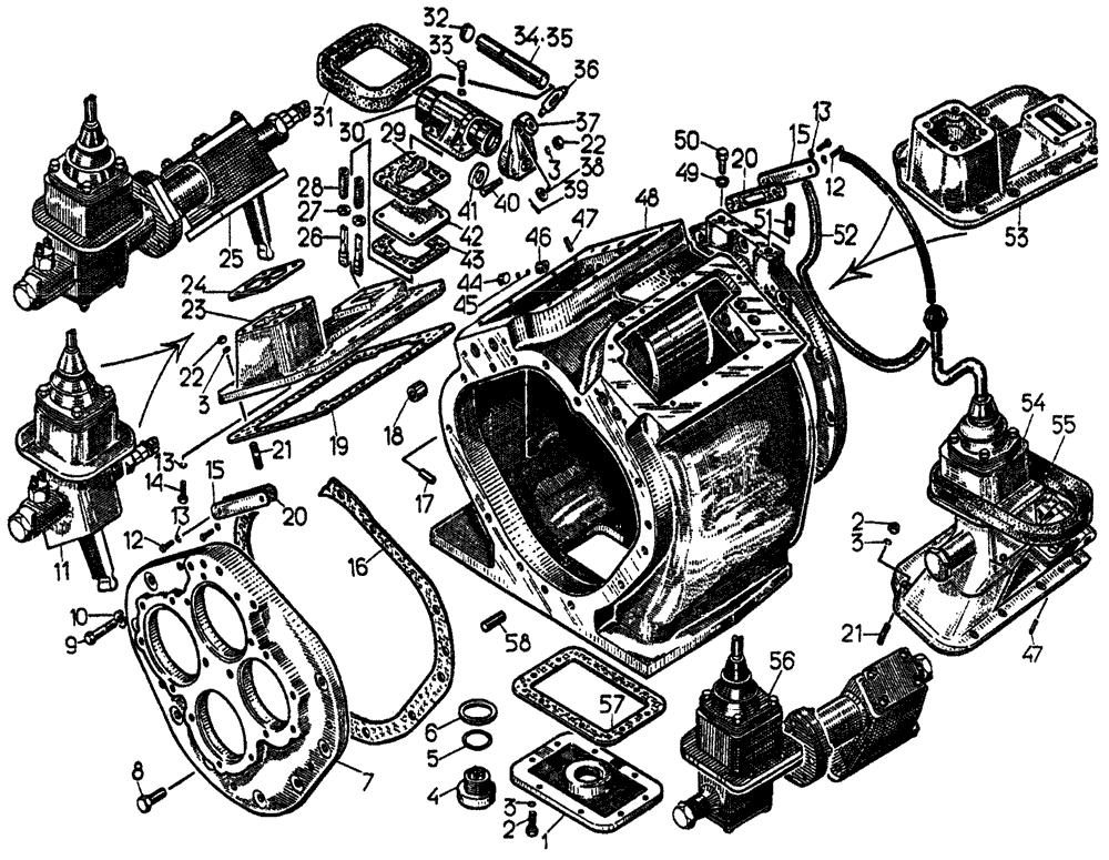 Корпус коробки передач Т10М с крышками и механизмами переключения
