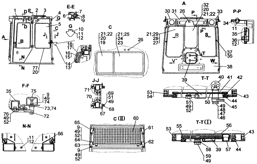 2 Для заказа комплект стекол 50-59-841СП. 3 Для заказа комплект стеклопакетов 64-59-242СП. 4 Для установки стеклопакетов. 5 Для трактора с пусковым двигателем. 6 Для трактора с электростартерной системой пуска. 7 Для трактора c ROPS-FORS. 8 Для кабины с дополнительным масляным отопителем. 9 Кабина с защитой заднего стекла. | |||