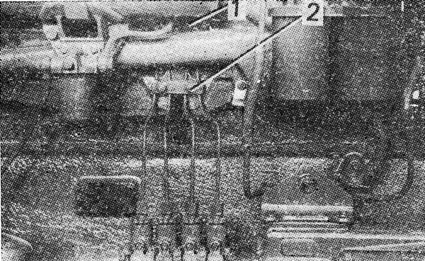 Снимите заднюю крышу капота трактора. Выверните болт с гайкой, прикрепляющей топливопроводы к кронштейну 1 ( рис. 189 ), и удалите стяжную колодку с прокладками. Выверните два болта 2, прикрепляющие топливопроводы высокого давления к головкам цилиндров, и удалите кронштейн, стяжную планку и прокладки. Отсоедините топливопроводы от форсунок и секций топливного насоса.