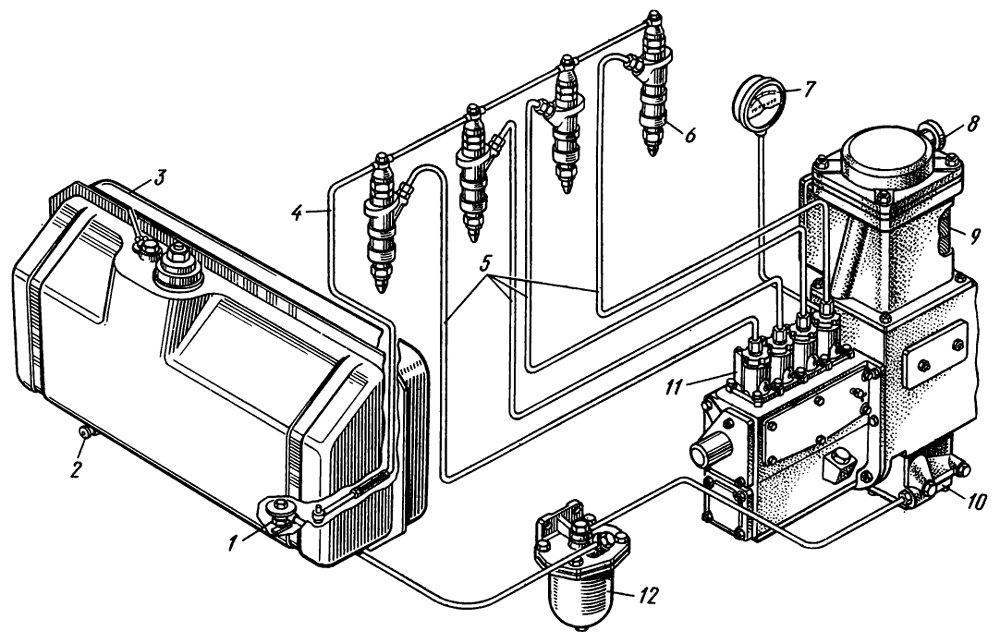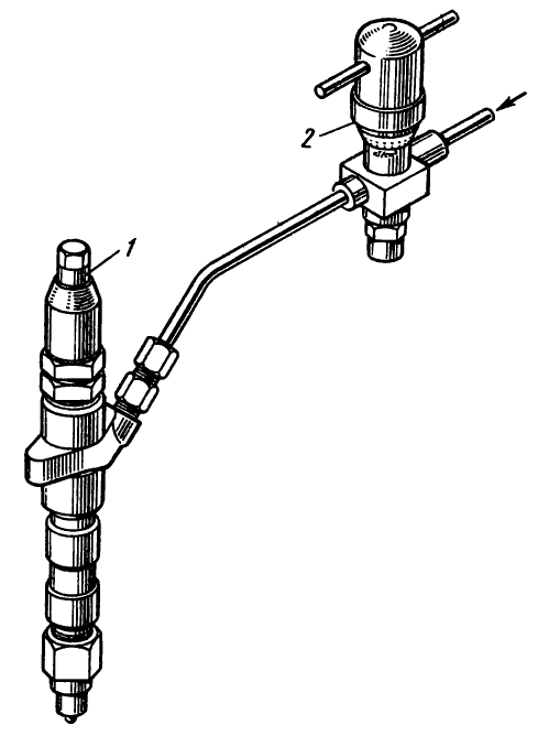 После проверки момента начала подачи топлива и его регулировки необходимо проверить работу автоматического отключения второго и третьего цилиндров. Эта проверка осуществляется следующим образом. При работе двигателя на холостых оборотах отсоединяют трубки высокого давления от II и III секций. Если подачи топлива нет через обратные клапаны, то отключенные секции работают нормально; если подача есть, необходимо убедиться в отсутствии подачи топлива через форсунки. Для этого форсунку, отрегулированную на давление 19,6 МПа (200 кгс/см²), поочередно присоединяют ко II и III секциям; если при работе двигателя на холостых оборотах подачи топлива через форсунку нет, то отключенные секции работают нормально.