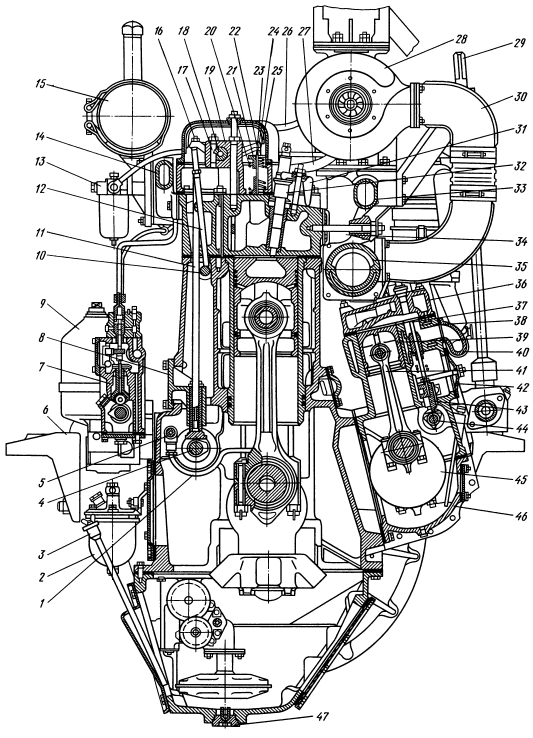 Коленчатый вал дизеля без нагрузки должен вращаться у двигателя Д-160 с частотой 1290— 1340 мин-1, у двигателя Д-160Б— 1250 мин-1; при работе с полной нагрузкой у двигателя Д-160 с частотой 1100—1160 мин-1, обеспечивая мощность 117,8 кВт, у двигателя Д-160Б—1070 мин-1, обеспечивая мощность 103 кВт.