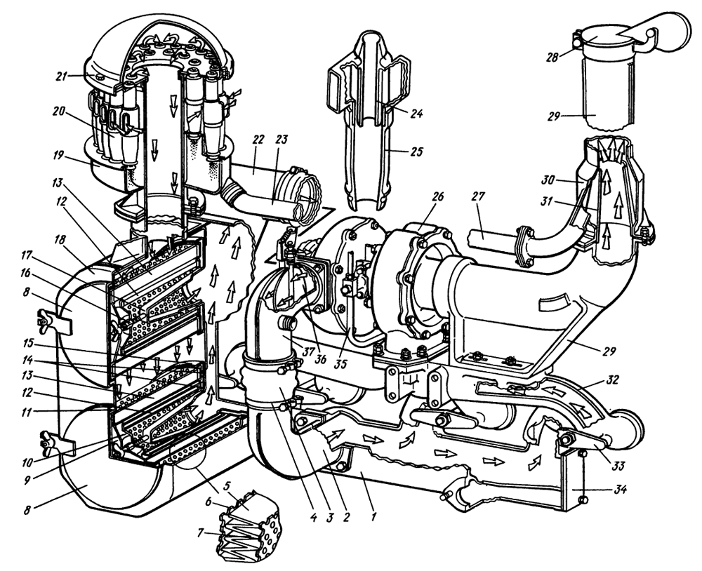 При ухудшении работы двигателя, выражающемся в появлении дымного выхлопа, падении мощности, пропуска вспышек и затрудненном пуске, следует проверить в первую очередь топливные фильтры, топливную аппаратуру и воздухоочиститель.