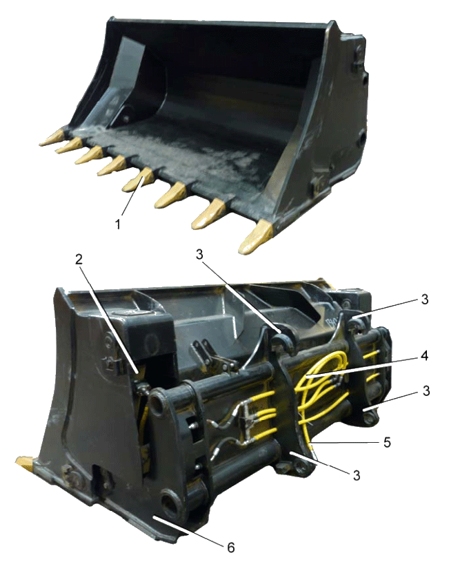 Особенностью ковша высокой разгрузки является увеличение высоты разгрузки за счет установки гидроцилиндров в конструкцию ковша.